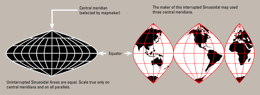 The history of the Sinusoidal Projection, before it was “interrupted,” can be traced back to the 16th century, making it the oldest pseudocylindrical projection still in use.